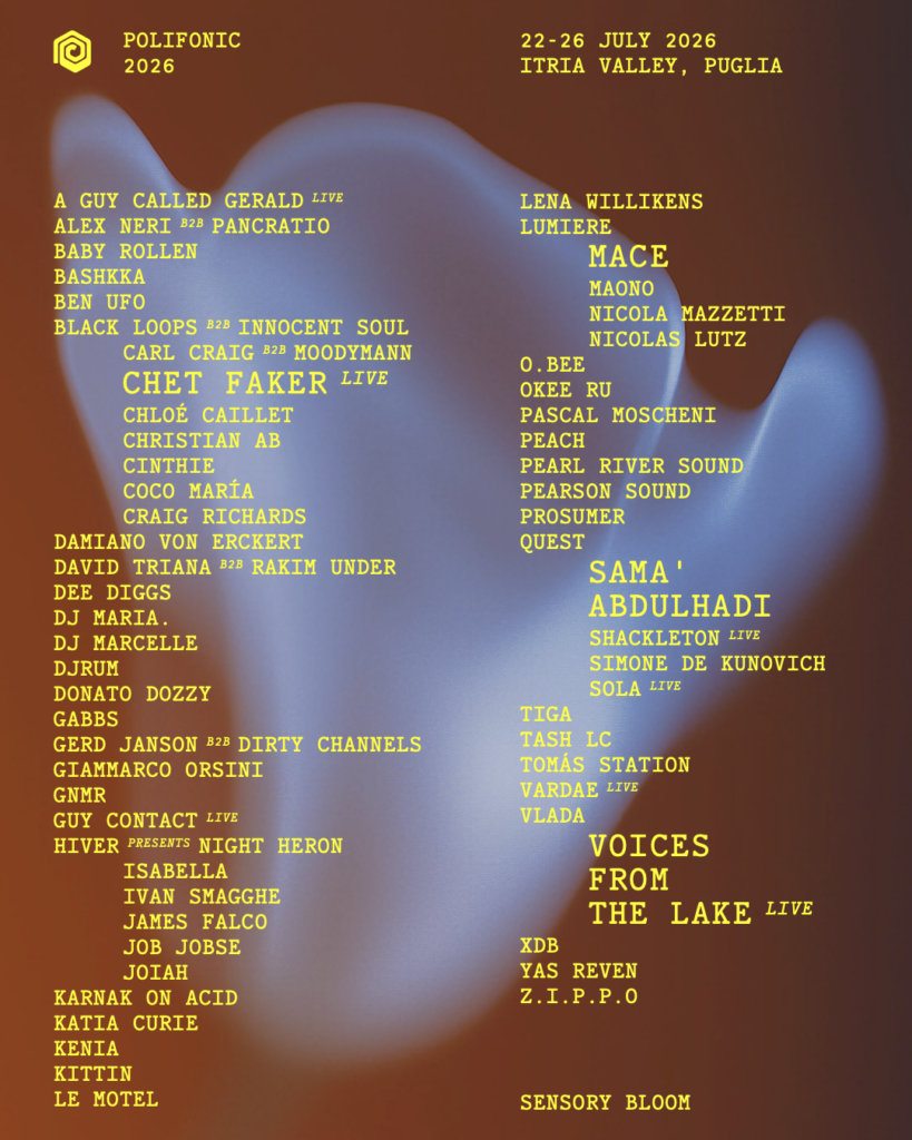 For its 2026 edition, from 22 to 26 July in the Valle d’Itria, Polifonic presents a program that consolidates its curatorial standing within Europe’s electronic landscape and reaffirms the South as author.